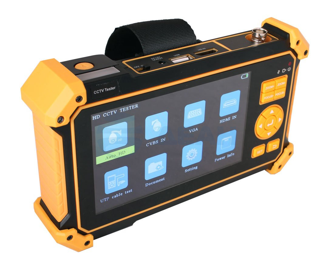 TSH-H-5 Универсальный монитор-тестер AHD/CVI/TVI/CVBS-видеосистем. Возможности: Поддержка AHD/CVI/TVI 2160P; PTZ - управление камерой; проверка UTP-кабеля; источник питания DC12V/1A, монитор данных RS485, видео вход, аудио вход. Разъемы: BNC, клеммы(RS485), RJ45, jack 3,5мм вход, разъем DC (12V/1A) выход, USB выход, USB micro (5V) вход. Характеристики: Разрешение экрана - 5" 800x480; Батарея Li-ion 3,7V 5200mAh; Размеры (ШxBxГ): 184x110х41мм; Рабочая температура от -10°С до 50°С.