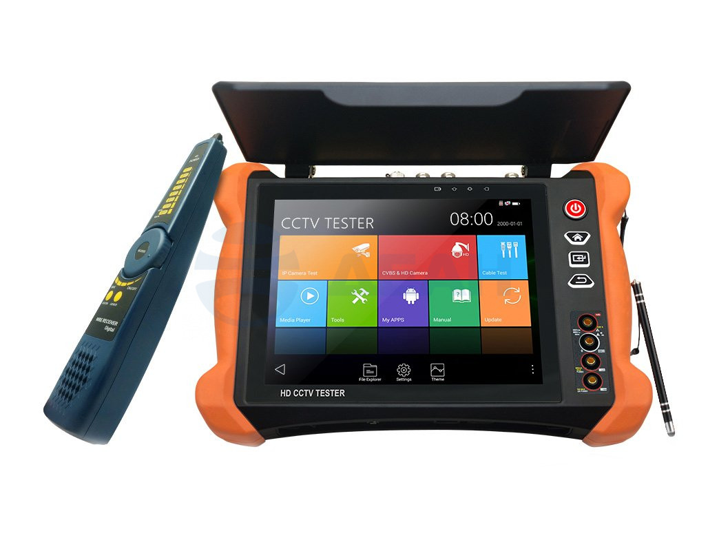 Универсальный монитор-тестер AHD/CVI/TVI/CVBS/SDI и IP-видеосистем. (Базовая модель + мультиметр + измеритель оптич. мощности + тестер оптич. линий + кабельный рефлектометр BNC + детектор кабельной трассы). Возможности: Поддержка ONVIF; 8Mp TVI, 8Mp CVI, 8Mp AHD, HD-SDI 1080p/EX-SDI 8Mp; Доступ в Web-интерфейс камеры с помощью встроенного браузера; Android - Приложения для управления камерами c возможностью самостоятельной установки/удаления ПО; Audio/Video плееры; Запись аудио/Video потоков, скриншотов на карту памяти; Кабельный рефлектометр с интерфейсом RJ-45 и BNC; измерение уровней видеосигнала, генератор тестовых таблиц; проверка UTP-кабеля; тестирование IP-сетей; RTSP; измерение РоЕ-напряжения; генератор CVBS; PTZ-управление; Мониторинг интерфейса RS485; HDMI-генератор; источник питания PoE (48V, 24Вт); источник питания DC12V/3А; источник питания DC24V/2A; источник питания DC5V/2А (USB), мультиметр; детектор кабельной трассы; локатор COAX/UTP кабеля; тест оптич. лин
